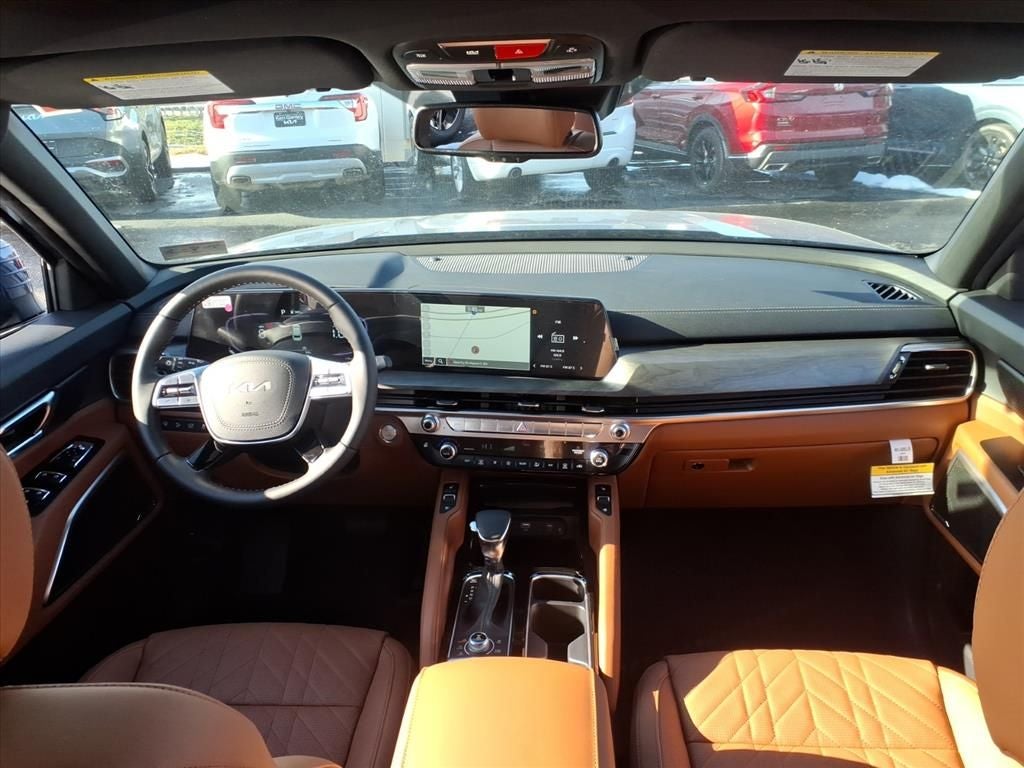 Newly Detailed, 3rd row seats: split-bench, 4-Wheel Disc Brakes, 6 Speakers, ABS brakes, Air Conditioning, All Weather Floor Mats, Alloy wheels, AM/FM radio: SiriusXM, Apple CarPlay & Android Auto, Auto High-beam Headlights, Auto-dimming Rear-View mirror, Auto-leveling suspension, Automatic temperature control, Brake assist, Bumpers: body-color, Compass, Delay-off headlights, Driver door bin, Driver vanity mirror, Dual front impact airbags, Dual front side impact airbags, Electronic Stability Control, Emergency communication system: 911 Connect, Exterior Parking Camera Rear, Four wheel independent suspension, Front anti-roll bar, Front Bucket Seats, Front Center Armrest, Front dual zone A/C, Front reading lights, Fully automatic headlights, Heated & Ventilated Front Bucket Seats, Heated door mirrors, Heated front seats, Heated steering wheel, Illuminated entry, Knee airbag, Leather Seat Trim, Leather Shift Knob, Leather steering wheel, Low tire pressure warning, Navigation System, Occupant sensing airbag, Outside temperature display, Overhead airbag, Overhead console, Panic alarm, Passenger door bin, Passenger vanity mirror, Power door mirrors, Power driver seat, Power Liftgate, Power moonroof, Power passenger seat, Power steering, Power windows, Radio data system, Radio: AM/FM Display Audio System, Rear air conditioning, Rear anti-roll bar, Rear audio controls, Rear reading lights, Rear side impact airbag, Rear window defroster, Rear window wiper, Reclining 3rd row seat, Remote keyless entry, Security system, Speed control, Speed-sensing steering, Split folding rear seat, Spoiler, Steering wheel mounted audio controls, Tachometer, Telescoping steering wheel, Terracotta Interior Color Package, Tilt steering wheel, Traction control, Trip computer, Turn signal indicator mirrors, Variably intermittent wipers, Ventilated front seats, Wheels: 20 x 7.5 Black Finish X-LINE Exclusive. Price includes: $3000 - KFA Dealer Choice Program: $3000 discount and 5.25% APR for 36 months. $30.08 per $1000 financed. Available to well qualified buyers who finance through Kia Finance America. 506. Exp. 02/02/2026