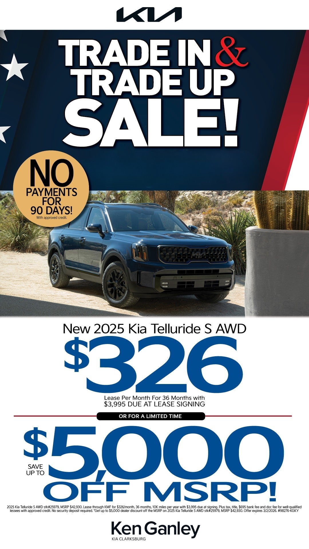 Displayed MPG is based on applicable EPA mileage ratings. Use for comparison purposes only. Your actual mileage will vary, depending on how you drive and maintain your vehicle, driving conditions, battery pack age/condition (hybrid models only) and other factors. For additional information about EPA ratings, visit https://www.fueleconomy.gov/feg/. We turn our inventory daily, Please check with the dealer to confirm vehicle availability. MSRP is Manufacturer's Suggested Retail Price; it is not our sale price, and is used for comparison purposes only. Vehicles can be subject to a market adjustment or discount. The discounted prices listed cannot be combined with 0% or special KFA offers. All new vehicles have a $749 ceramic coating, screen defender and all-season floor mats of $395. Call to confirm the price . All offers do not include sales tax, vehicle registration fees, finance charges, documentation charges, and any other fees required by law. We attempt to update this inventory on a regular basis. However, there can be a delay between the sale of a vehicle and the update of the inventory. Pricing and availability may vary based on a variety of factors, including options, manufacturer employee pricing, specials, fees, and financing qualifications. The estimated selling price that appears after calculating dealer offers is for informational purposes, only. You may not qualify for the offers, incentives, discounts, or financing. Offers, incentives, discounts, or financing are subject to expiration and other restrictions. See dealer for qualifications and complete details. Non-local customers can be subject to market adjustments. May not represent actual vehicle. (Options, colors, trim and body style may vary)