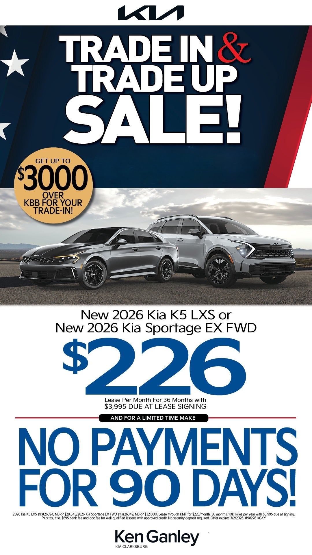 2026 Kia K5 or 2026 Kia Sportage- You Pick