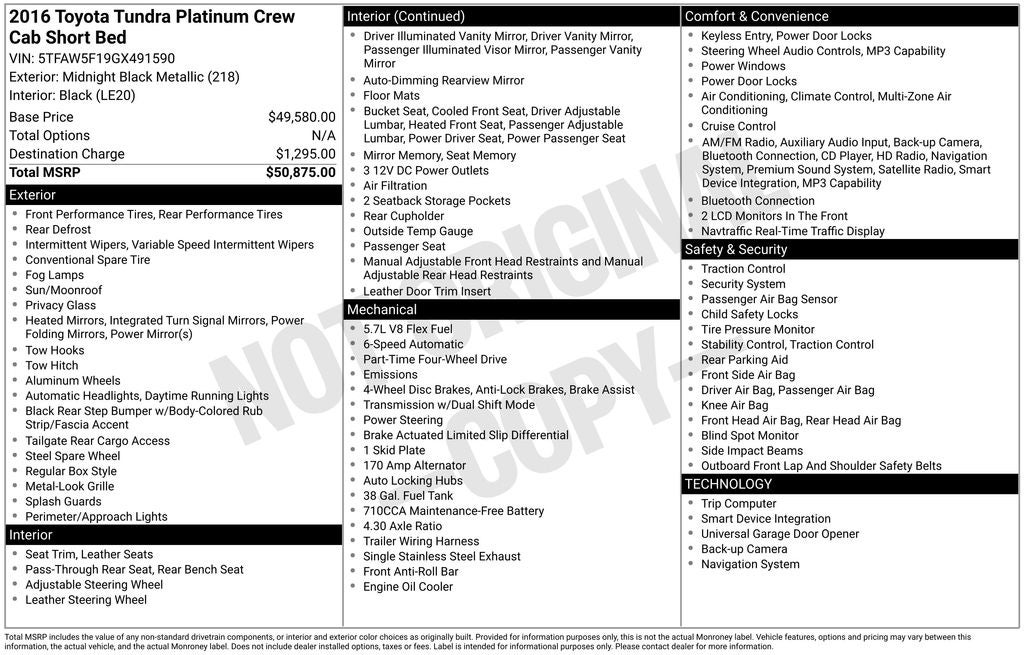 Toyota Tundra 2016 Purple Newly Detailed, 4WD, Leather, 4-Wheel Disc Brakes, 4.30 Axle Ratio, ABS brakes, Air Conditioning, AM/FM radio: SiriusXM, Brake assist, CD player, Compass, Driver door bin, Driver vanity mirror, Dual front impact airbags, Dual front side impact airbags, Electronic Stability Control, Exterior Parking Camera Rear, Front anti-roll bar, Front Bucket Seats, Front fog lights, Front reading lights, Front wheel independent suspension, Heated door mirrors, Illuminated entry, Knee airbag, Low tire pressure warning, Occupant sensing airbag, Outside temperature display, Overhead airbag, Overhead console, Panic alarm, Passenger door bin, Passenger vanity mirror, Power door mirrors, Power steering, Power windows, Rear reading lights, Rear seat center armrest, Rear step bumper, Rear window defroster, Remote keyless entry, Speed control, Speed-sensing steering, Split folding rear seat, Tachometer, Tilt steering wheel, Traction control, Trip computer, Variably intermittent wipers, Voltmeter, 4WD, Leather.