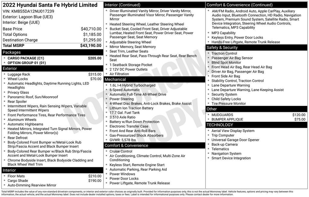 - Vehicle Name: Hyundai Santa Fe Hybrid
