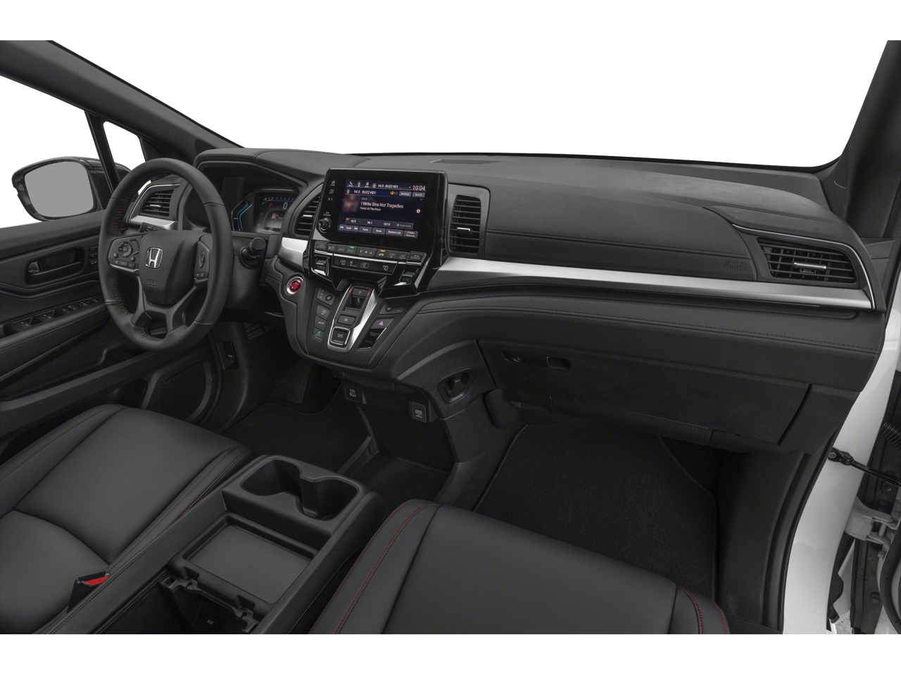 Honda Odyssey Sport 2023 Newly Detailed, 3.61 Axle Ratio, 3rd row seats: split-bench, 4-Wheel Disc Brakes, 7 Speakers, A/V remote: CabinControl, ABS brakes, Adaptive Cruise Control: Adaptive Cruise Control (ACC) with Low-Speed Follow, Air Conditioning, Alloy wheels, AM/FM radio: SiriusXM, Anti-whiplash front head restraints, Apple CarPlay/Android Auto, Auto High-beam Headlights, Auto-dimming Rear-View mirror, Automatic temperature control, Blind Spot Information (BSI) System warning, Brake assist, Bumpers: body-color, Delay-off headlights, Driver door bin, Driver vanity mirror, Driver's Seat Mounted Armrest, Dual front impact airbags, Dual front side impact airbags, Electronic Stability Control, Exterior Parking Camera Rear, Four wheel independent suspension, Front anti-roll bar, Front Bucket Seats, Front dual zone A/C, Front fog lights, Front reading lights, Fully automatic headlights, Garage door transmitter: HomeLink, Heated door mirrors, Heated Front Bucket Seats, Heated front seats, Illuminated entry, Knee airbag, Lane departure: Lane Keeping Assist System (LKAS) active, Leather Seat Trim, Leather steering wheel, Low tire pressure warning, Memory seat, Occupant sensing airbag, Outside temperature display, Overhead airbag, Overhead console, Panic alarm, Passenger door bin, Passenger seat mounted armrest, Passenger vanity mirror, Power door mirrors, Power driver seat, Power Liftgate, Power moonroof, Power passenger seat, Power steering, Power windows, Radio data system, Radio: 160-Watt AM/FM/HD/SiriusXM Audio System, Rear air conditioning, Rear anti-roll bar, Rear reading lights, Rear seat center armrest, Rear window defroster, Rear window wiper, Reclining 3rd row seat, Remote keyless entry, Security system, Speed control, Speed-sensing steering, Speed-Sensitive Wipers, Split folding rear seat, Spoiler, Steering wheel mounted audio controls, Tachometer, Telescoping steering wheel, Tilt steering wheel, Traction control, Trip computer, Turn signal indicator mirrors, Variably intermittent wipers, Wheels: 19 Gloss Black Alloy.