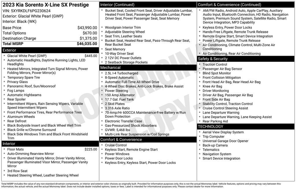 - Vehicle Name: Kia Sorento
